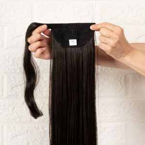 Παρόλο που το συνθετικό ponytail είναι κατασκευασμένο από συνθετικό υλικό μπορείτε να το λούζετε και να το περιποιείστε μόνο με προϊόντα καλής ποιότητας όπως κάνετε με τα φυσικά σας μαλλιά. Το λούσιμο και η φροντίδα παρατείνει τη διάρκεια ζωής του ponytail.